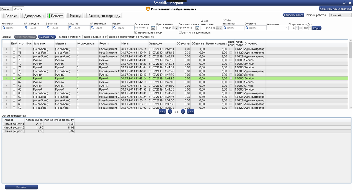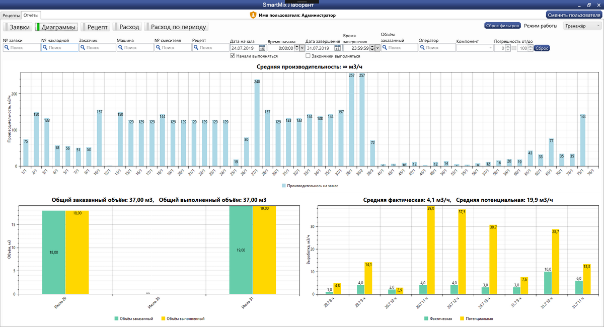 - Широкие возможности фильтров: по "Машинам", "Заказчику", "№ смесителя" и т.д;