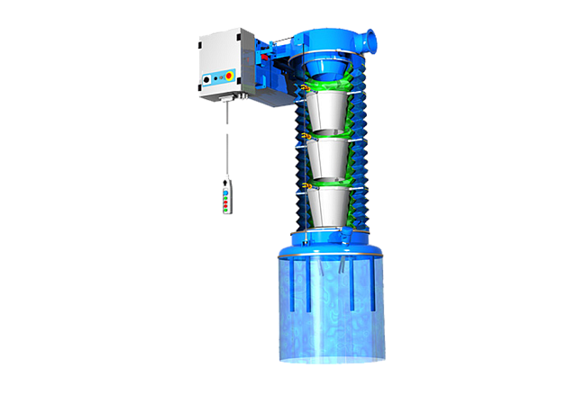 Телескопический загрузчик разработан для направления потока цемента в емкость для хранения, не допуская растраты пылящегося продукта. Может быть оснащен фильтром для сбора цементной пыли, что предотвращает загрязнение воздуха и дает возможность повторного использования цемента. Сильфоны загрузчика исполняются из гибкого материала, покрытого гидрофобным ПВХ, что придает конструкции устойчивость к агрессивным химическим веществам.