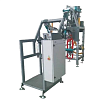 Фасовочная машина высокой производительности предназначена для заполнения мешков клапанного типа различными сыпучими продуктами. Может применяться для фасовки сухих строительных смесей, цемента, гипса, сухих красок, муки и прочих материалов. Машина обеспечивает плотное заполнение мешков и не допускает запыления продуктом рабочего помещения. Механические элементы отсутствуют, что делает затраты на техобслуживание минимальными. Мешки насаживаются автоматически.